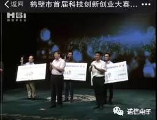 鶴壁市諾信電子有限公司 榮獲“鶴壁市首屆科技創(chuàng)新創(chuàng)業(yè)大賽決賽”三等獎(jiǎng)