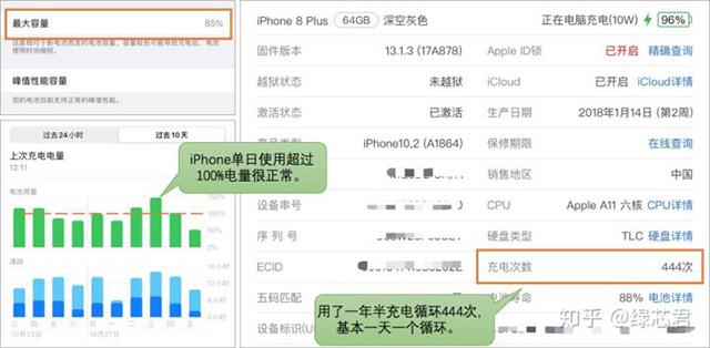 同樣是鋰電池,為什么手機和電動車使用時間相差甚遠?我的iPhone 8P用了一年半,現在“電池健康”顯示數值為85%——而作為對比,我的插電混動車開了兩年快3萬公里。看不到具體衰減數值,但充滿電的續駛里程從63掉到了62km,滿打滿算這62馬上就要衰減到61,那就是掉了2km,健康度為96.8%。這比手機的健康數字,要看上去好很多。