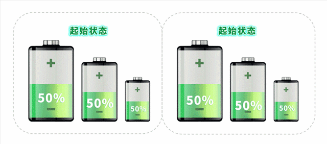 容量一致,是指每個碗的大小-樣。SOC( State of Charge ,荷電狀態)一致,是指50ml的碗裝25ml水和40ml的碗裝20ml水時的SOC都是50%,剩余容量與其滿電容量的比值相同。