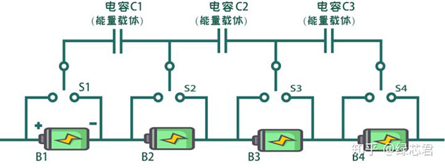 另一種專業叫法是非能量耗散式均衡,也就是主動均衡。其原理為將能量高的電芯內的能量轉移到能量低的電芯中去。這個碗里裝不下,貢獻出來,轉移到沒有填滿的碗。